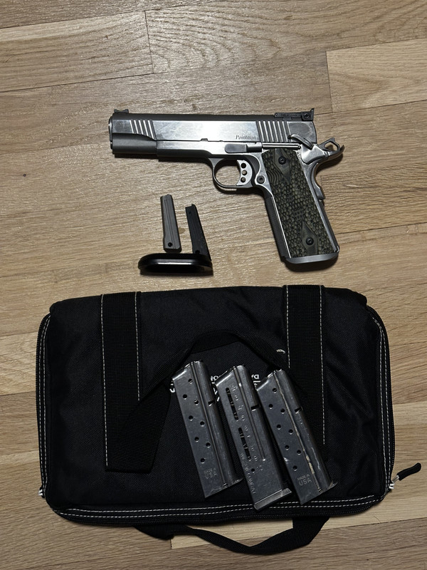 For sale is a Dan Wesson Pointman, 5" 1911 in 9mm. This gun has the following installed: a Stan Chen SI magwell, Wilson Combat ambi safety, and classic style 3-hole trigger with an amazing trigger job done by Northern Virginia Gunworks. Trigger breaks at 3lbs 4oz. Also has VZ grips, and a brand new Sprinco 13lbs recoil spring in it. Will include original mainspring housing, Dawson ICE magwell, two factory mags and a Wilson 10rd mag. Gun is currently zeroed with Speer Gold Dot 124gr/Lawman 124gr. This is an amazing USPSA Single Stack minor pistol. Selling to fund other projects. Price is $1600. CHP, VA DL, bill of sale. Not interested in trades at this time.