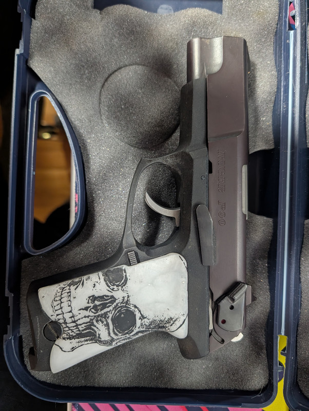 SOLD__ Up for sale or trade is a classic Ruger P90 in .45 ACP. This is one of the good ones—it has developed that distinctive, desirable plum-colored hue on the slide that these older Rugers are famous for. It’s built like a tank and eats everything. A great example of 90s reliability with a cool unique look. Includes: The Pistol: Ruger P90 (.45 ACP) with the plum slide finish 2x Factory Magazines 2x Extended Magazines Upgraded Custom Grips installed (looks and feels much better than stock) Trades: Mainly looking to trade for something chambered in 9mm. Let me know what you have. Location: Richmond, VA area Price: 400 or Trade