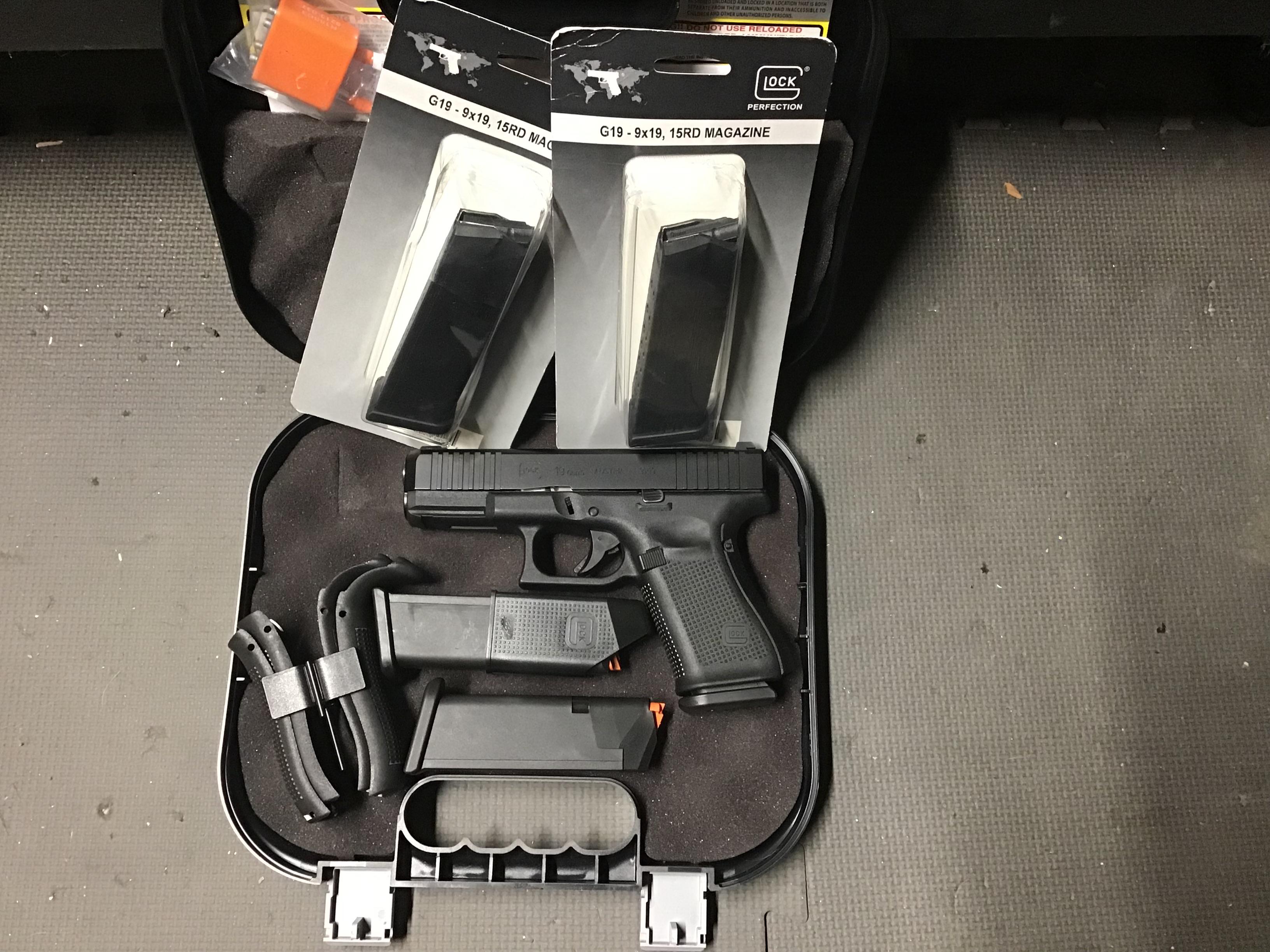 I have a like new Gen 5 Glock 19 with Glock night sights installed. Case and all of the accessories included, along with two additional new in the package Gen 4 Glock mags for a total of five mags.