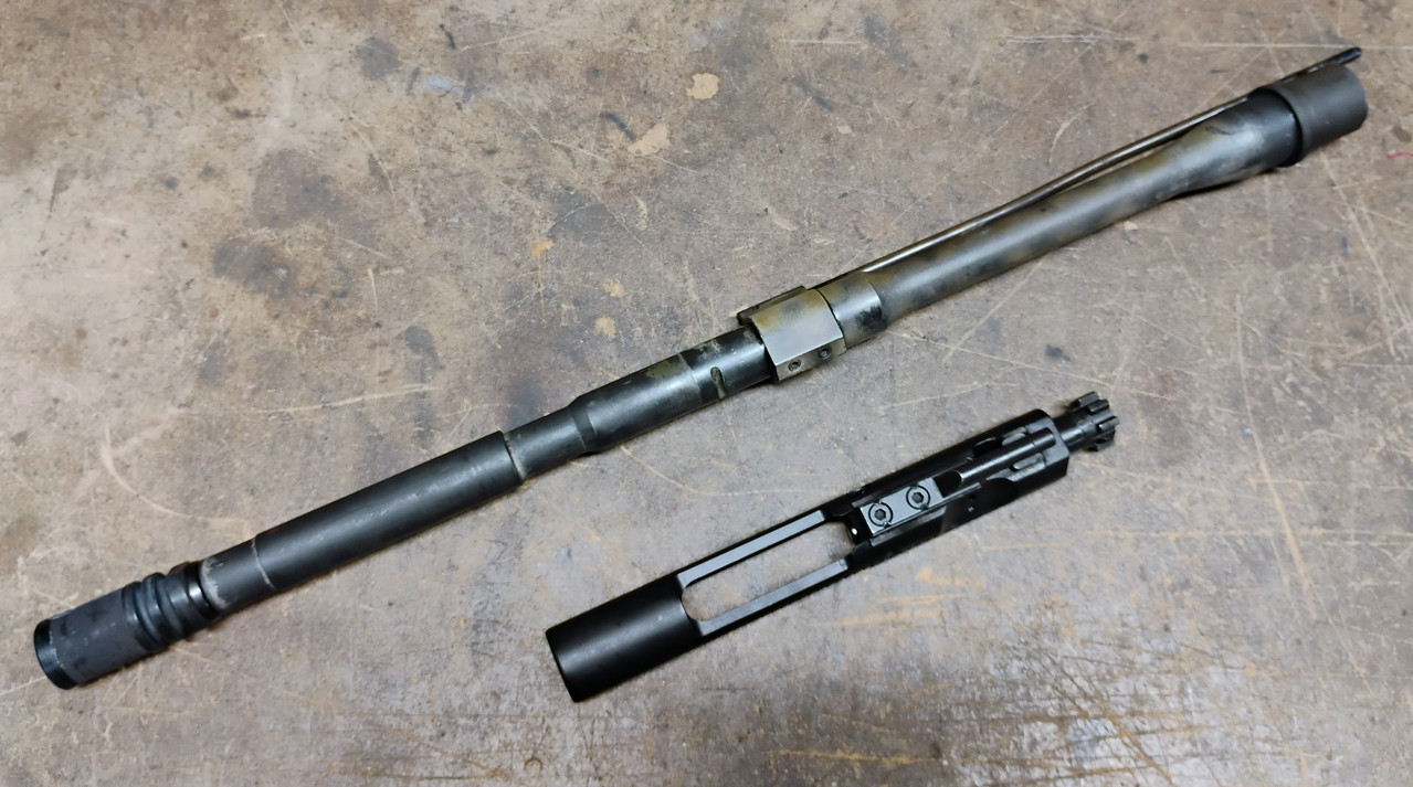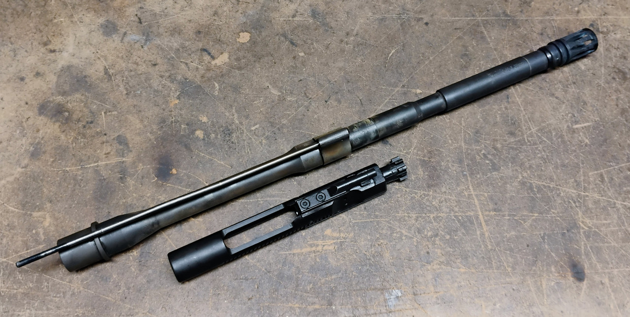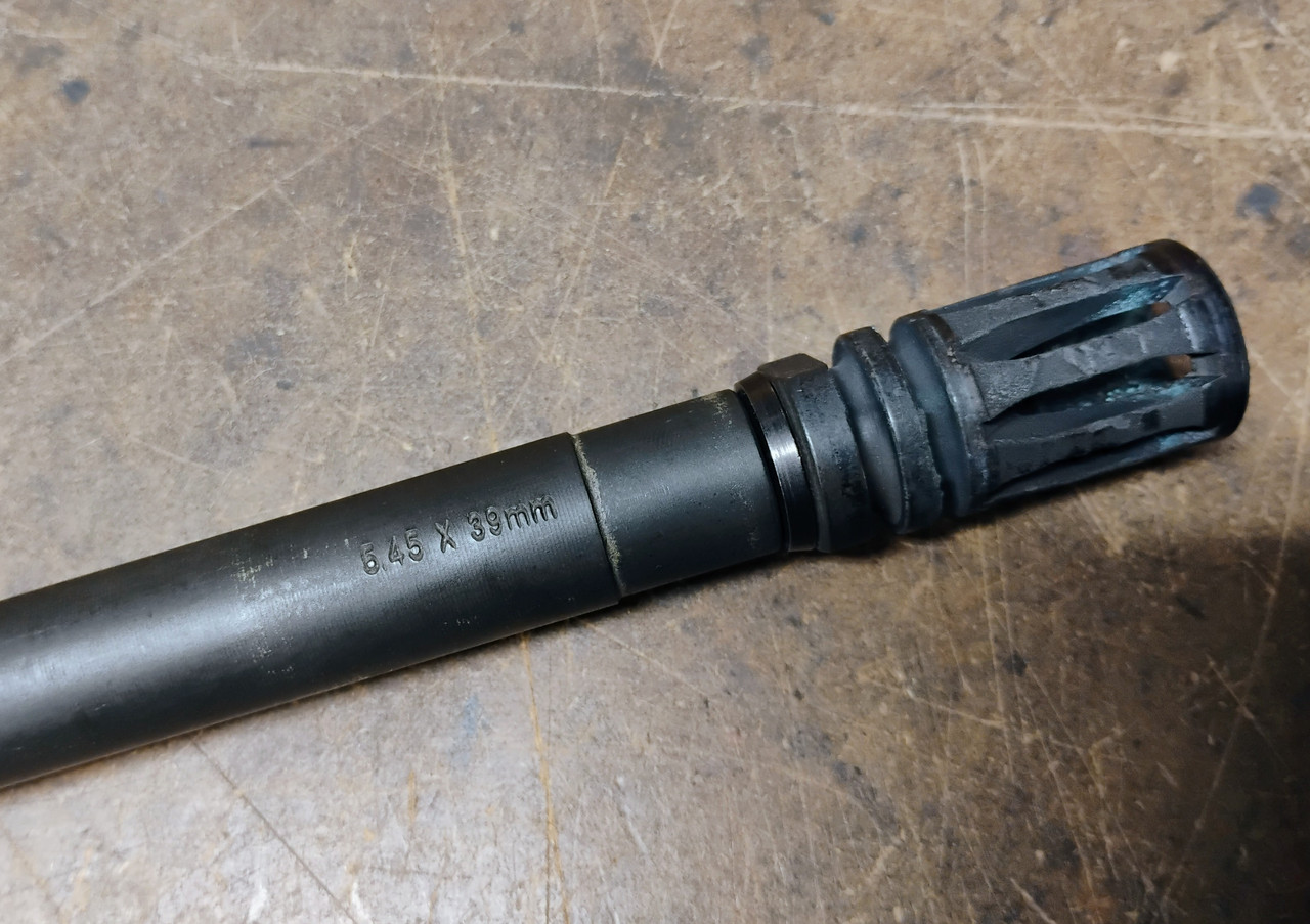 5.45x39 AR barrel and BCG from S&W M&P15R -Has low profile gas block instead of the FSB -The rifle this was in was painted a couple times, hence the spotty paint overspray on the barrel -Complete factory bcg -4000 rounds through it, still shooting 7n6 very nicely -It's a little salty looking but it shoots well I have 5.45 AR mags available also. $200 in Verona, VA.