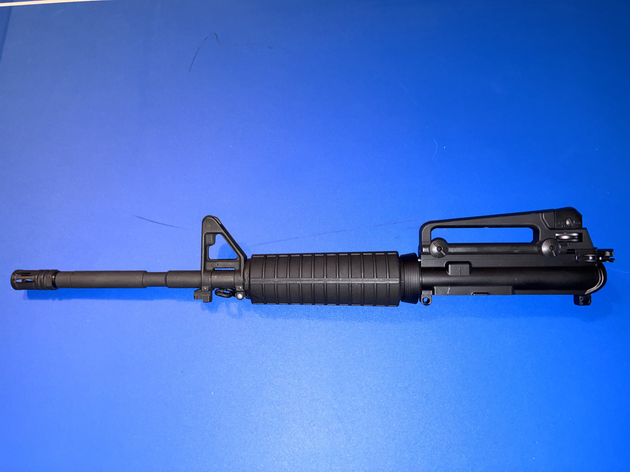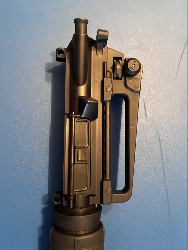 NOTE - lower is not included in this sale, but for reference only 5.56 NATO chamber 1:9 twist barrel detachable carry handle, a2 flash hider, F-marked front sight base Double heat shielded carbine length hand guards with carbine gas system Handling marks $375 includes bolt carrier group and charging handle and carry handle.      [img]https://i.postimg.cc/T2k4MyYZ/IMG_7158.jpg[/img] [img]https://i.postimg.cc/jdLkssD0/IMG_7159.jpg[/img]